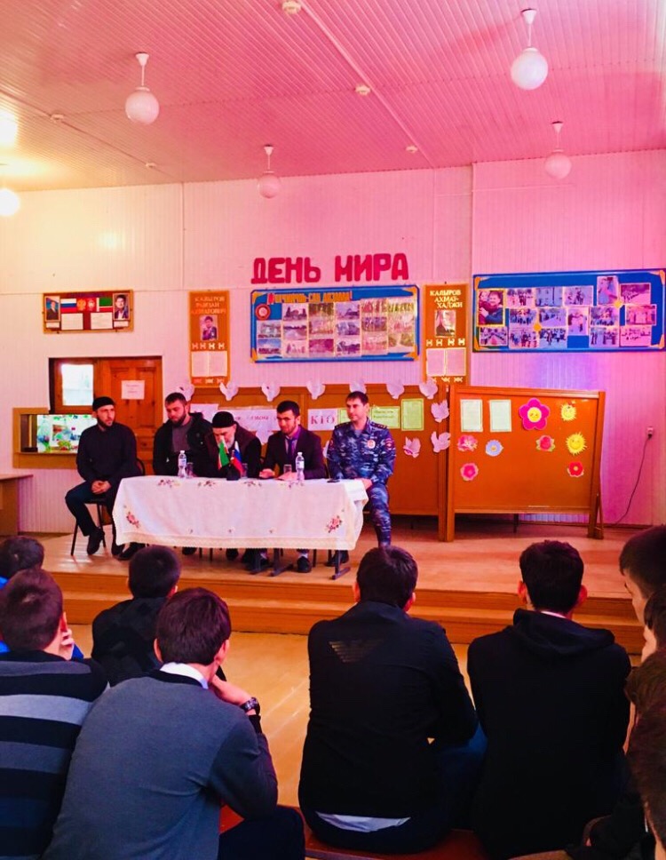 11.04.2019 г. в МБОУ «Ищерская СОШ» прошла встреча с учащимся 9-11 кл. на которой присутствовали представители духовенства села, участковый, глава администрации, председатель МОПД «АХМАТ», педагог-организатор по ДНВ.Активисты ЕДЮО « Юные Кадыровцы» приняли активное участие в организации этой встречи, активно участвовали в беседе. Были затронуты вопросы поведения учащихся в школе и общественных местах, уважительного и корректного отношения школьников к учителям, взрослыми сверстникам. Беседа для учащихся получилась не только познавательной, но и очень полезной. Хочется надеяться, что ребята серьёзно отнеслись к информации, поверили, что мир полон чудесных красок: это учеба, занятия спортом, участие в конкурсах, фестивалях и многое другое, а это уже половина успеха к достижению поставленных целей.