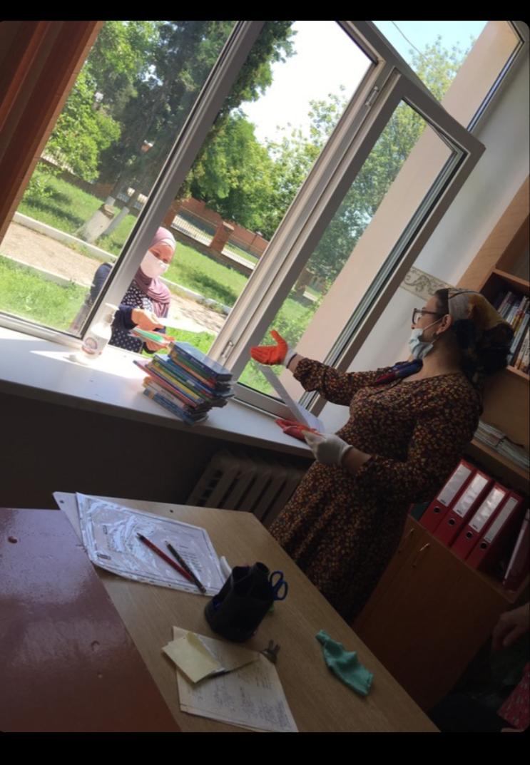 Учебники сдаются согласно графику, с соблюдением всех требований: в перчатках и масках, с использованием антисептиков для обработки рук, поверхностей, книг, пакетов, помещений.