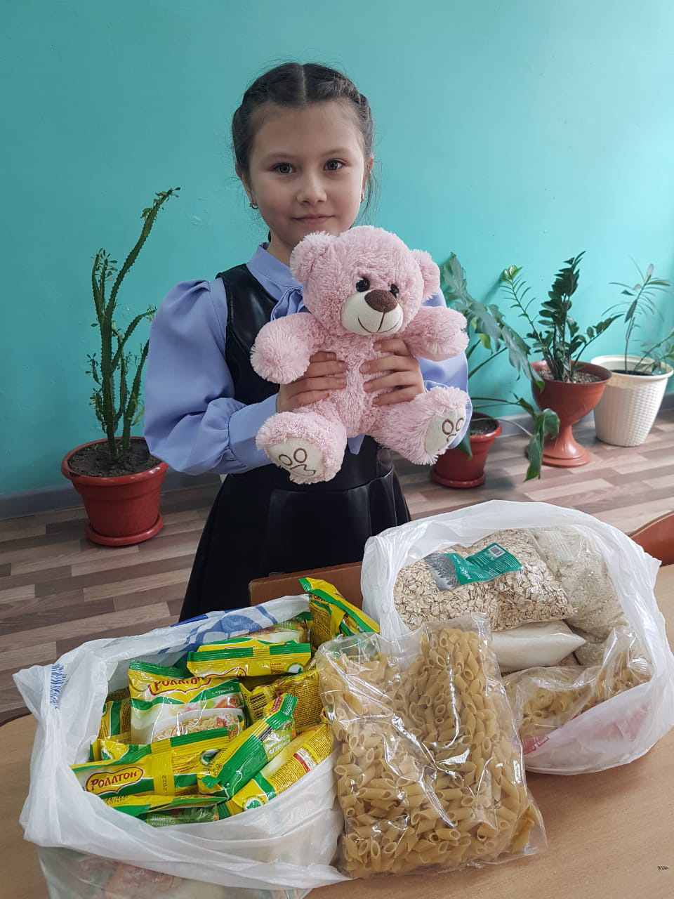 Ученики и родители 1 «Б» класса принимают активное участие в сборе гуманитарной помощи для беженцов из ДНР и ЛНР🤍