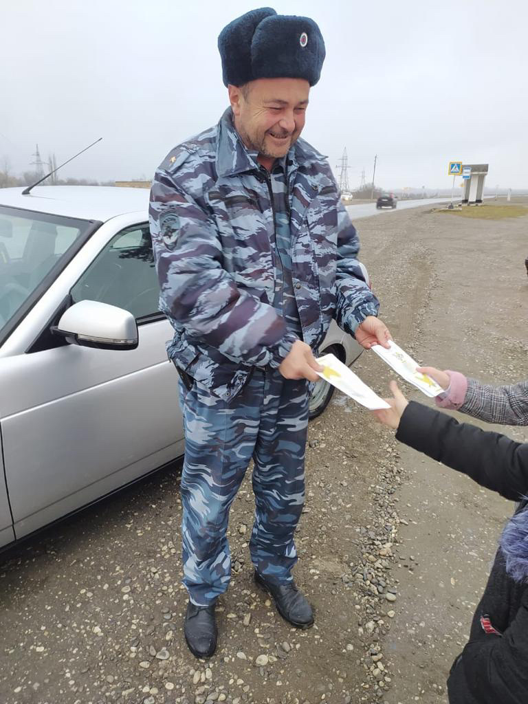 Участники акции проводят распространение листовок и буклетов, призывают граждан знать и соблюдать правила дорожного движения.