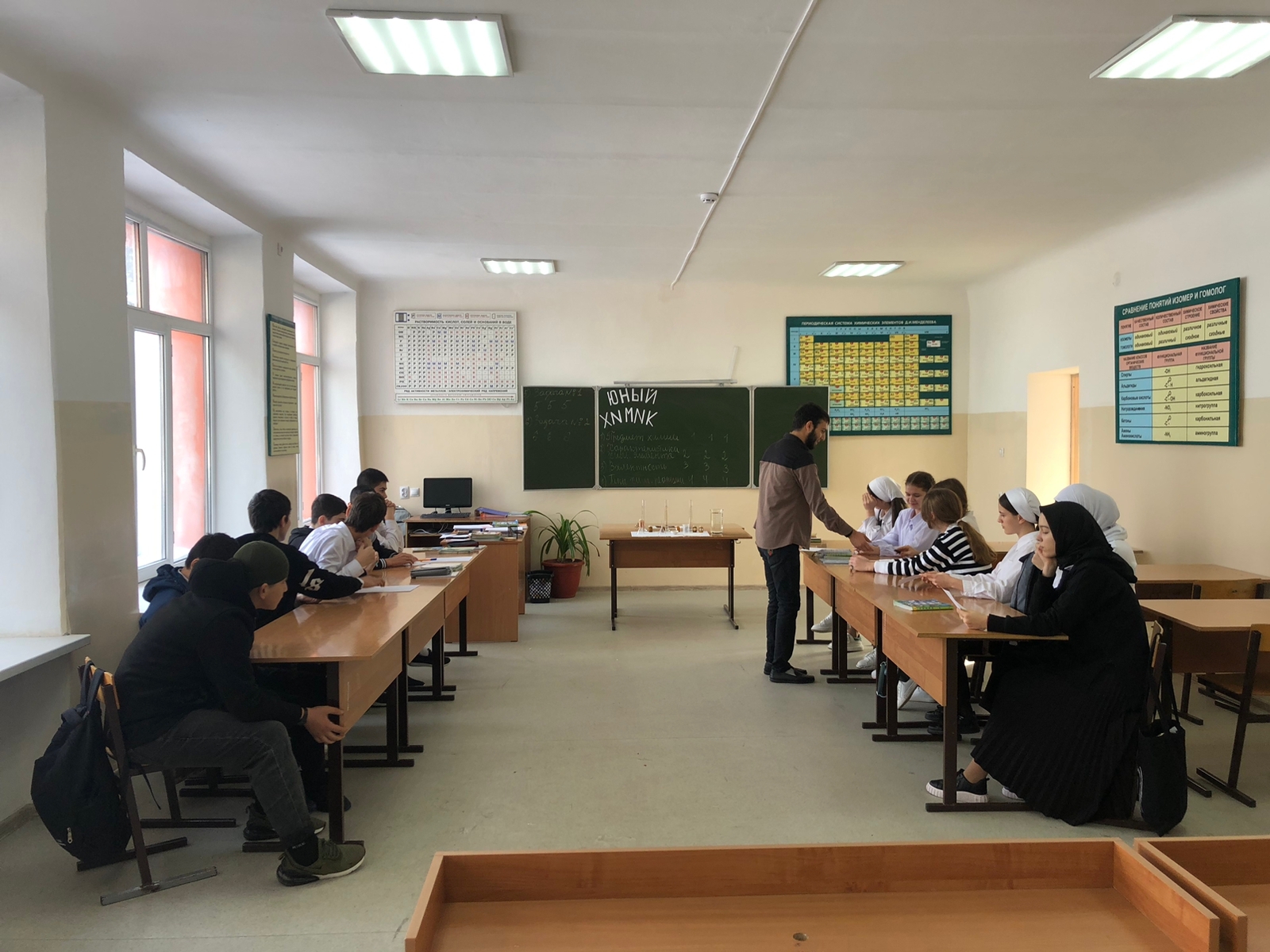 08.02.2023На уроке химии у обучающихся 8 «А» класса прошла игра «Юный химик».Учитель: Сайфулов Т.М поставил перед собой задачи:1. Выявить уровень сформированности знаний учащихся по главе «Первоначальные химические понятия»2. Развить у учащихся коммуникативные навыки.Цель:расширение кругозора учащихся, развитие устойчивого познавательного интереса к новому изучаемому предмету.