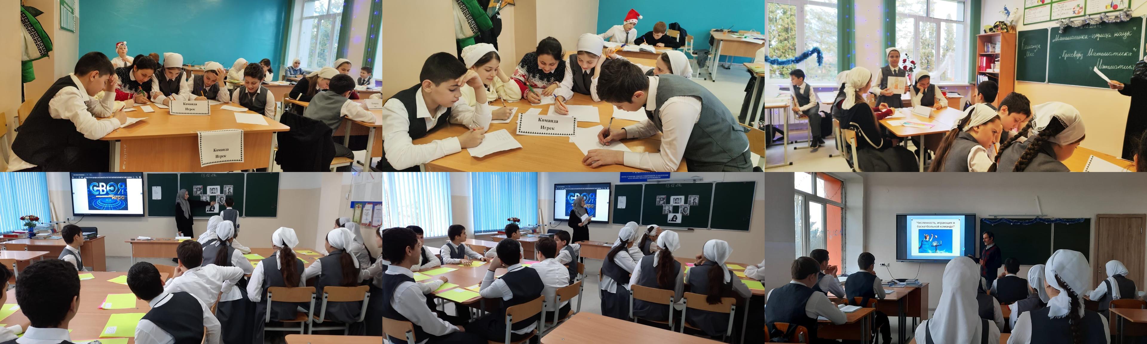 Анвар Мустасимович Музафаров, учитель математики, в 9 классе провёл викторину под названием «Математические заморочки». Хадижат Ибрагимовна Алиева, учитель математики, в 7 классе организовала интеллектуальную игру «Своя игра». Малика Исаевна Успаева, учитель математики, в 5 классе устроила КВН под названием «Математика в нашей жизни».