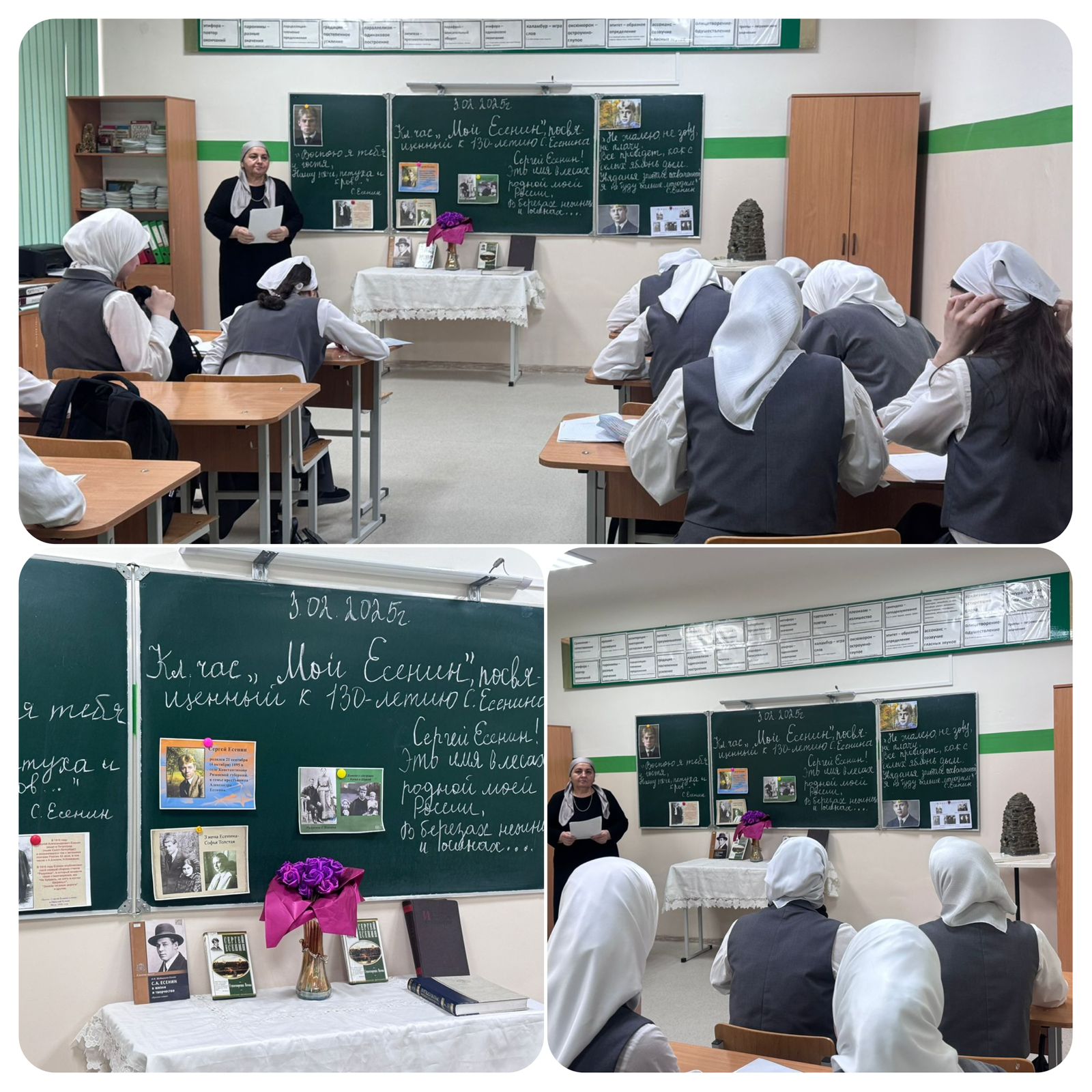 03.02.2025130-летие со Дня рождения Сергея Есенина.В нашей школе прошло мероприятие, посвящённое 130-летию со дня рождения выдающегося русского поэта Сергея Есенина. Цели мероприятия, посвящённого Сергею Есенину: Расширение знаний учащихся о жизни и творчестве поэта. Вызывание интереса к его поэзии. Совершенствование навыков выразительного чтения. Воспитание любви к Родине, матери, природе и поэзии. Знакомство с биографией и творчеством Сергея Есенина.В начале мероприятия учитель русского языка и литературы Батаева Марет Ибрагимовна рассказала о жизни и творческом пути Есенина, подчеркнув его вклад в русскую литературу и уникальность поэтического языка. Были подробно рассказаны факты из биографии поэта, его любовь к природе и родной земле, а также о личных трудностях и испытаниях, которые он пережил.Затем ученики 8 «А» класса прочитали любимые стихотворения Есенина, такие как «Берёза», «Письмо к женщине» и «Шаганэ, ты моя Шаганэ». Каждый участник поделился своими впечатлениями от прочитанного, рассказав, как произведения поэта затрагивают их внутренний мир и чувства. Атмосфера мероприятия была пронизана искренностью и уважением к творчеству Есенина.Это литературное мероприятие стало не только данью памяти великому поэту, но и увлекательной возможностью для всех присутствующих осознать красоту и глубину русской поэзии. В завершение мероприятия Марет Ибрагимовна прочитала стихотворение Сергея Есенина «Письмо женщины».